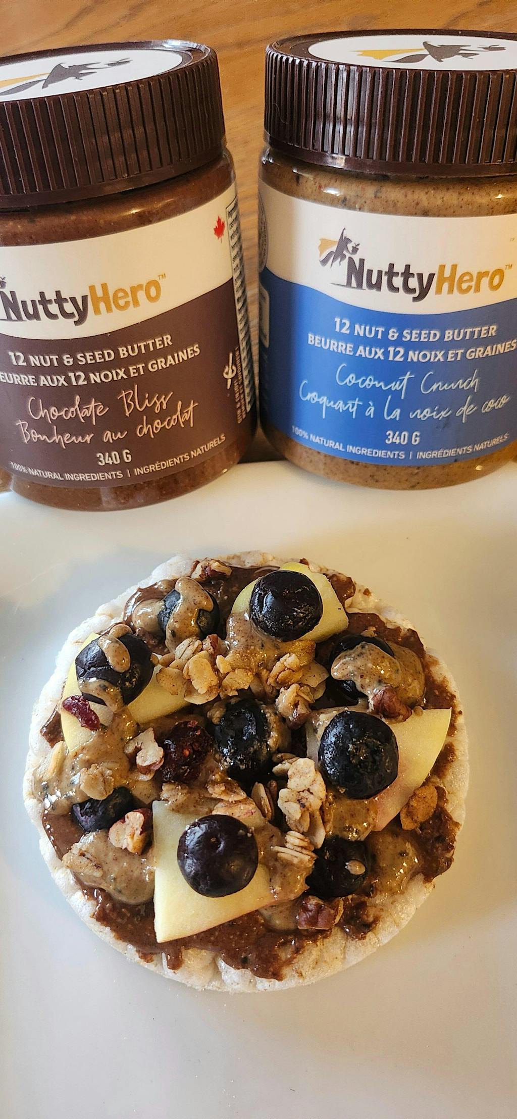 I tried NuttyHero as I wanted to switch to a Canadian made specialty nut butter and it doesn’t disappoint! The chocolate bliss has a rich but subtle chocolate flavour. Great with fruit and on my oatmeal! I also love maple cinnamon…the seeds add such a unique and addictive taste!! A yummy and nutritious treat! Will be buying more!
